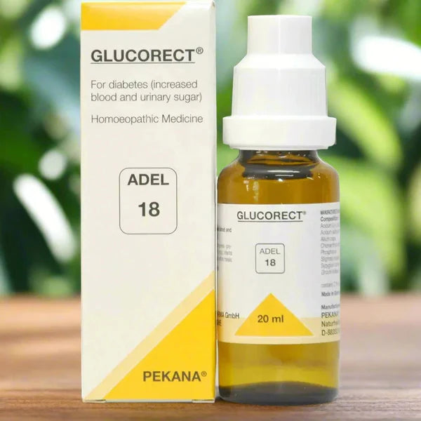 ADEL 18 Glucorect Drop is a homoeopathic medicine that helps in the management of increased blood sugar levels. It regulates blood sugar levels and reduces the levels down to their normal range. It helps in managing formication and prickly heat in the upper limbs.