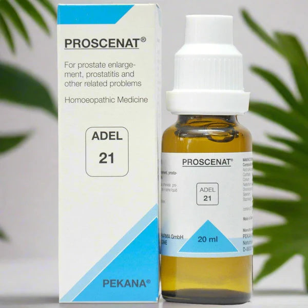 ADEL 21 Proscenat Drop is a homoeopathic veg prostate care capsule that helps support healthy prostate and normal urogenital function. It alleviates the inability to empty the bladder, eases symptoms of enlarged prostate and supports PSA levels. The formulation helps maintain male health and manage indicated symptoms of enlarged or ageing prostate